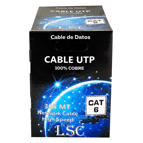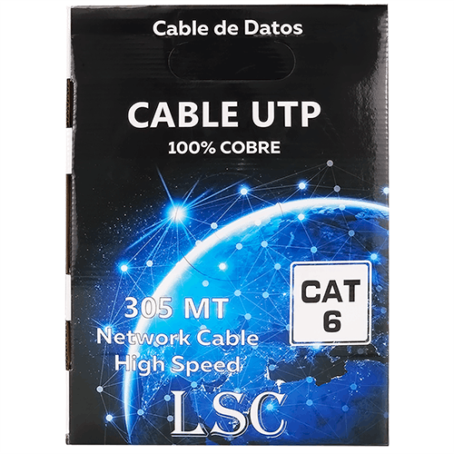 Cable UTP categoría 6, compuesto de 4 pares de hilos de cobre trenzados, calibre 23 (AWG), ha sido concebido para máxima velocidad en aplicaciones de transmisión de datos. Elaborado conforme a los más altos estándares de transmisión de datos de redes LAN, la configuración de sus pares trenzados garantizan su óptimo desempeño, el cual cumple además con las normas eléctricas y de telecomunicaciones pertinentes a nivel mundial, tales como ANSI/TIA/EIA 568C.2 e ISO/IEC 11801. Es ideal para toda clase de instalación de cableado estructurado. Viene en presentación de rollo de 305m.